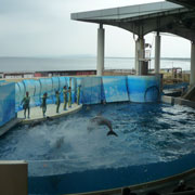 イルカショーやカメのエサやり体験をしました。